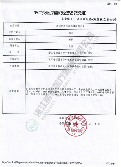 第二類醫(yī)療器械經(jīng)營備案憑證